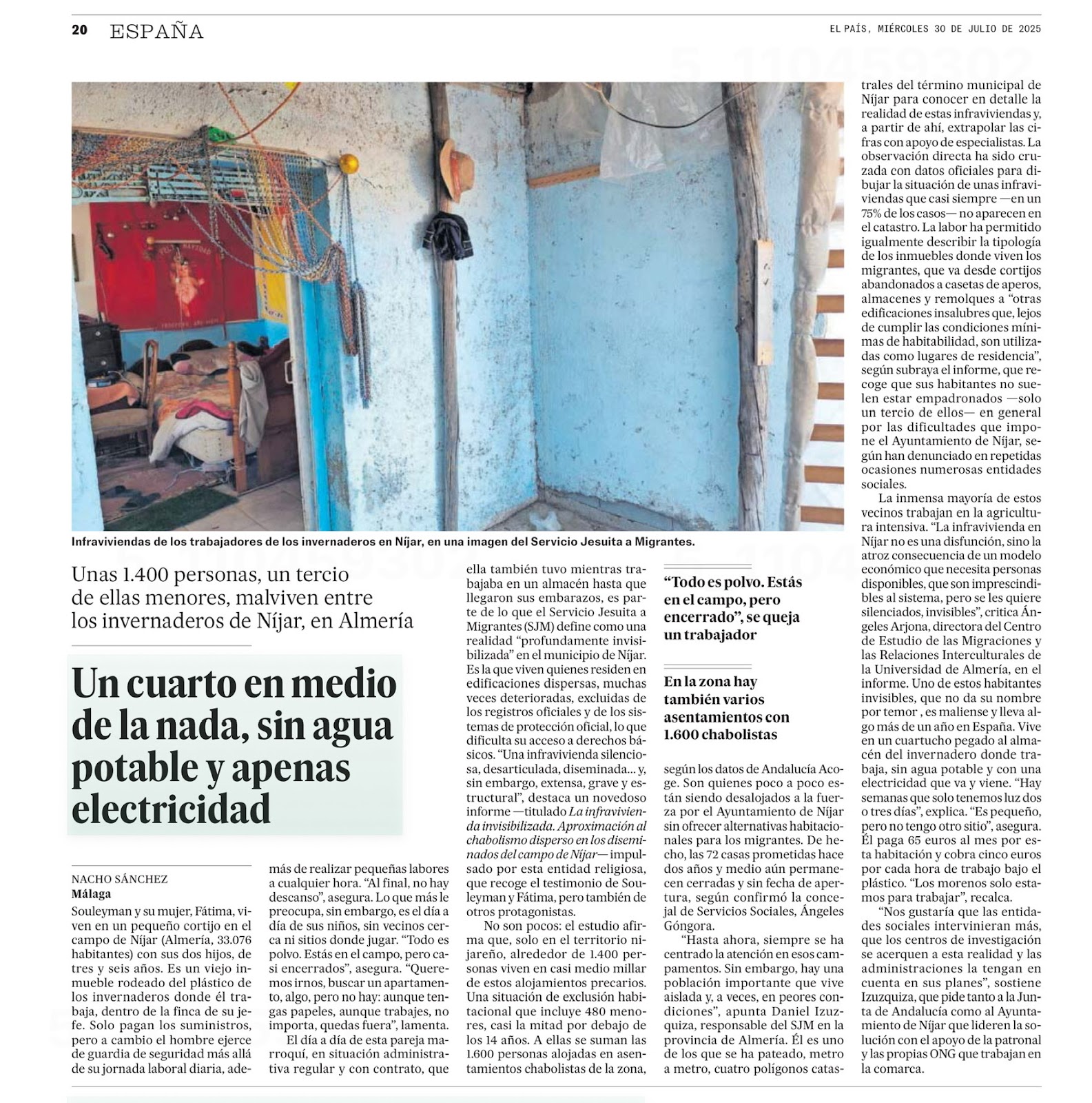 ➡️ Segona foto: Informe i imatges difoses pels missioners jesuïtes, publicades avui El País, sobre les condicions de vida infrahumanes dels immigrants, explotats pels cacics locals, a Almeria.